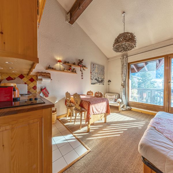 In a small, quiet condominium ideally located in the resort centre, just a short walk from the shops and ski lifts, this charming 1-bed flat measures approx. 33 sqm. It comprises an entrance hall, a large cabin bedroom with double bed, a bathroom with WC and living room with balcony. You'll appreciate the high ceilings and easy parking in the residence's covered car park. It is sold furnished and with a ski locker. Condominiums of 76 units (No proceedings in progress). Annual expenses : 5000 euros.