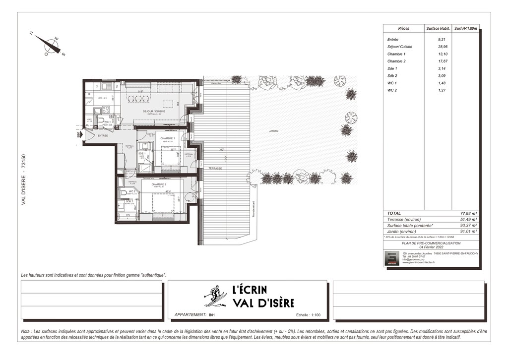 Come and discover this brand new 78 sqm apartment, available immediately and sold elegantly furnished! It offers two beautiful en-suite bedrooms, a pleasant living room with a beautiful south-east facing terrace and a private garden of approximately 56 sqm, which is rare in Val d'Isère! The residence offers a 12-metre swimming pool, sauna, hammam and gym. This new property allows you to benefit from reduced notary fees and a VAT credit if you decide to rent it out. It comes with two parking spaces within the residence, a ski locker and a storage cellar. Condominiums of 23 units (No proceedings in progress).