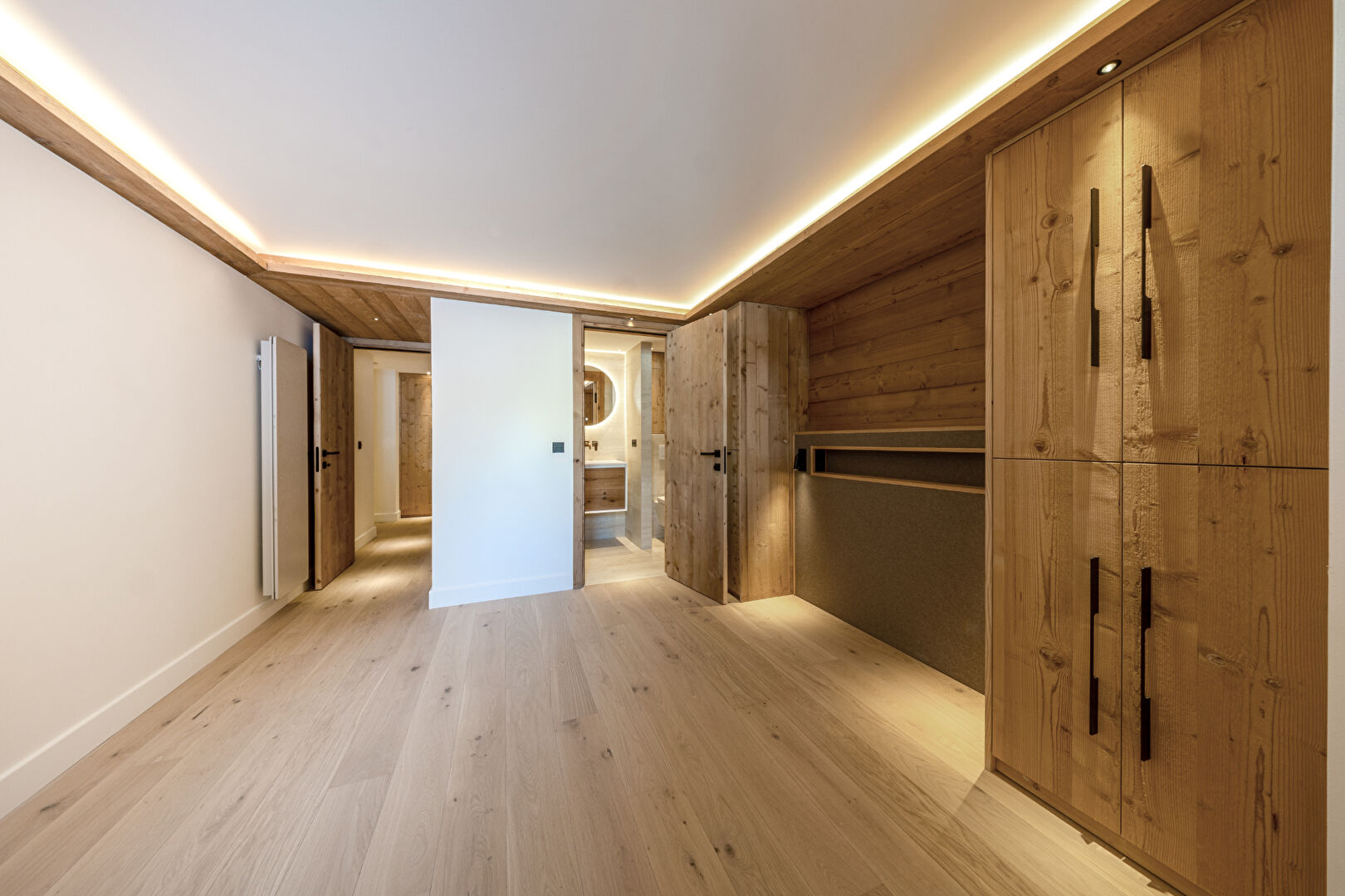 L'Écrin is an intimate residence that hosts 23 high-end apartments with 2 to 6 bedrooms. Entirely designed and furnished in an alpine spirit, the apartments benefit from beautiful unobstructed views and guaranteed sunshine. You will also enjoy the shared swimming pool and gym area, and an alpine atmosphere. This new 100sqm apartment offer two en-suite bedrooms + a cabin, as well as a beautiful living room with open kitchen, and a spacious south-east facing balcony. Condominiums of 23 units (No proceedings in progress).