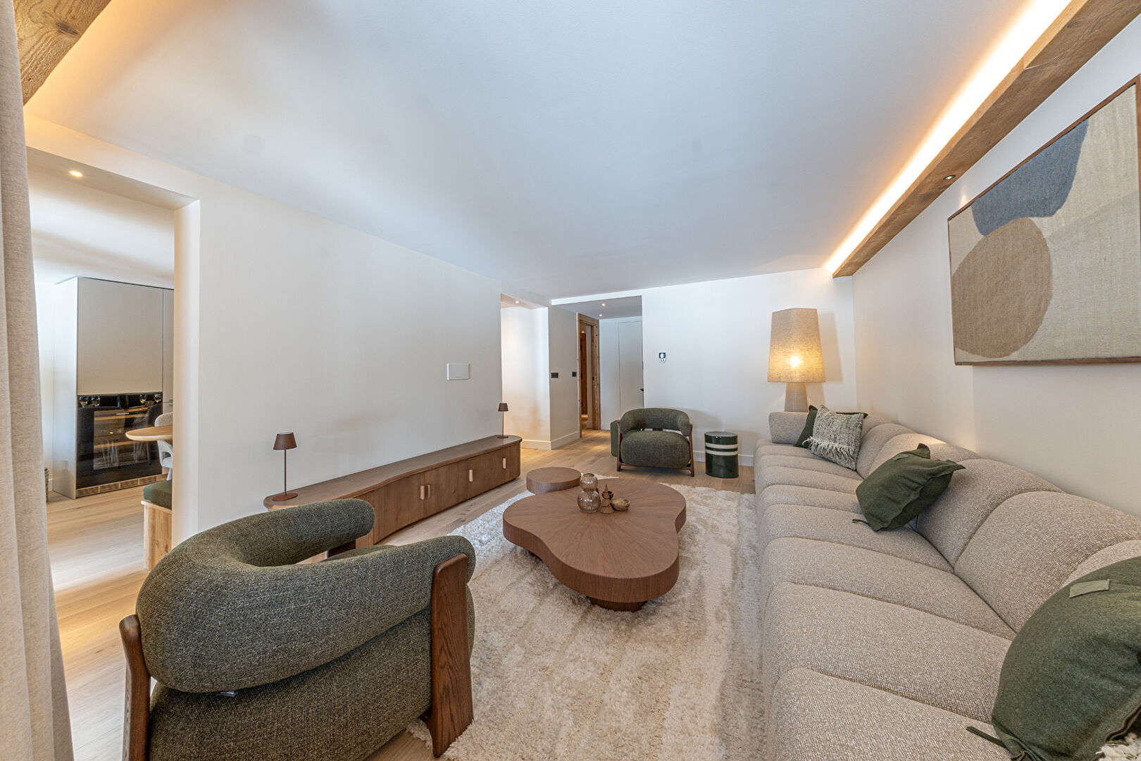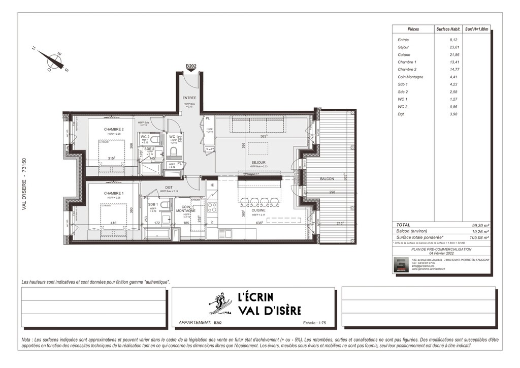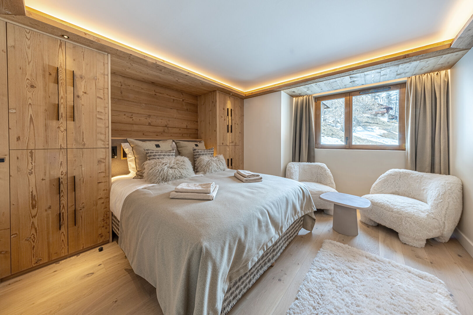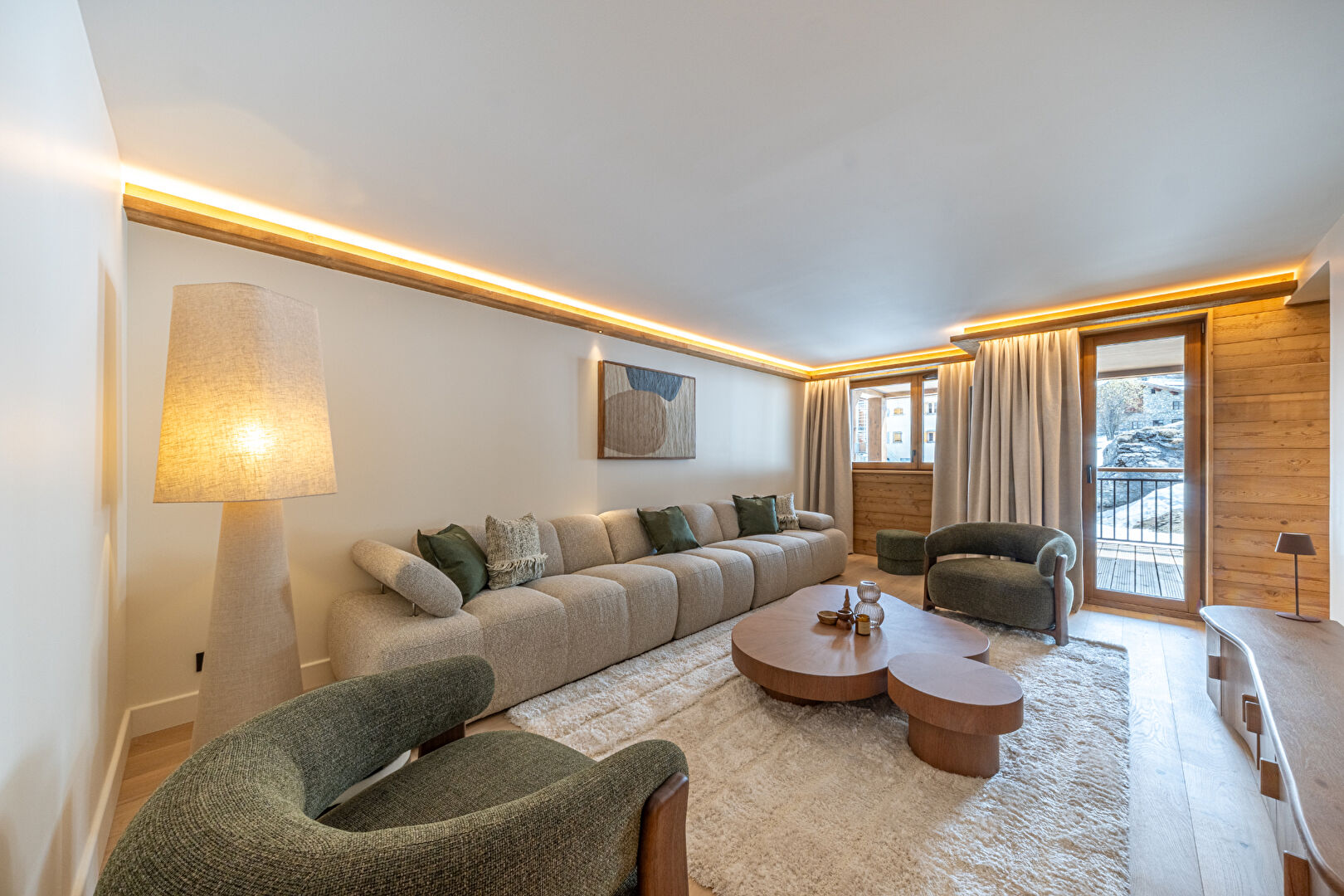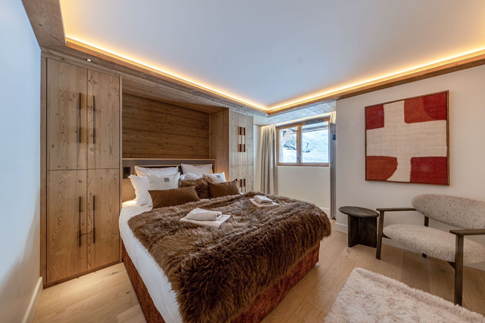 Come and discover this beautiful new 99 sqm flat in an intimate residence comprising 23 high-end flats, all designed and furnished in an Alpine style. This property is ready for immediate occupancy. It features a lovely living area with an open-plan kitchen and a large south-east-facing terrace. The sleeping area comprises a lovely en-suite double bedroom and a spacious family suite with a double bed and a children's sleeping area fitted with bunk beds. Contemporary décor with soft, rounded lines makes this a cosy retreat, ideal for spending time with loved ones in the heart of winter. Within the residence, you'll also enjoy the communal swimming pool, gym, sauna and steam room, offering a relaxing and exotic atmosphere. The apartment is sold with a ski locker with boot dryer, a storage cellar and two parking spaces. Condominiums of 23 units.