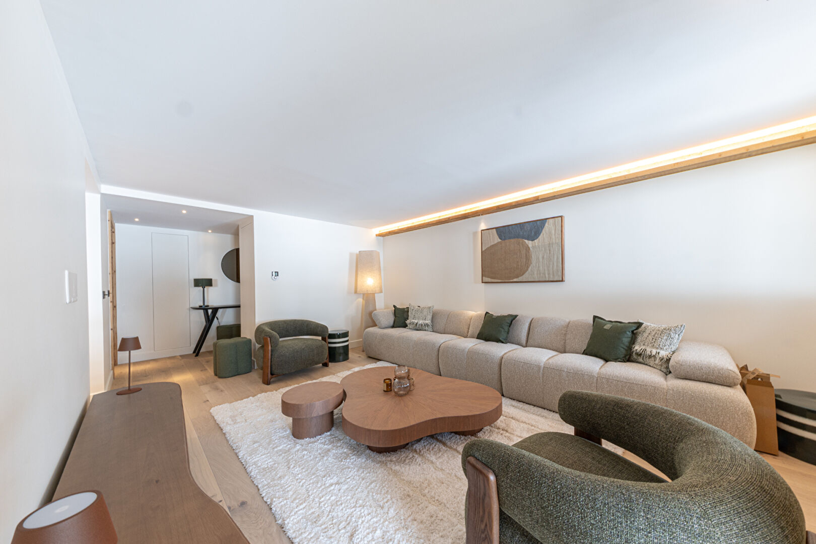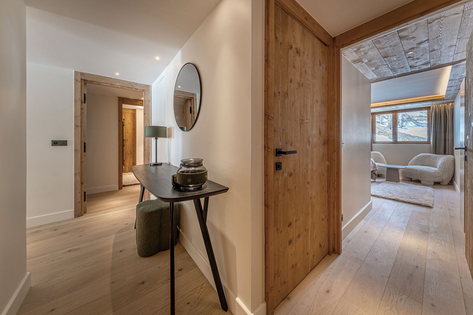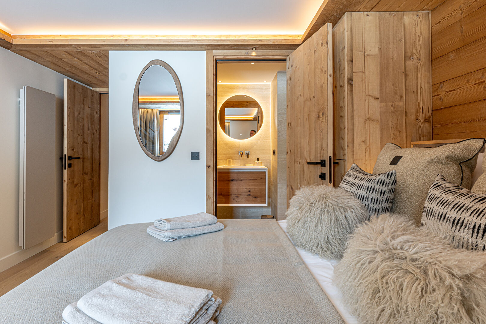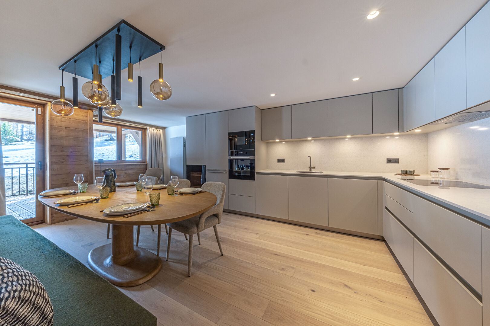 Come and discover this beautiful new 99 sqm flat in an intimate residence comprising 23 high-end flats, all designed and furnished in an Alpine style. This property is ready for immediate occupancy. It features a lovely living area with an open-plan kitchen and a large south-east-facing terrace. The sleeping area comprises a lovely en-suite double bedroom and a spacious family suite with a double bed and a children's sleeping area fitted with bunk beds. Contemporary décor with soft, rounded lines makes this a cosy retreat, ideal for spending time with loved ones in the heart of winter. Within the residence, you'll also enjoy the communal swimming pool, gym, sauna and steam room, offering a relaxing and exotic atmosphere. The apartment is sold with a ski locker with boot dryer, a storage cellar and two parking spaces. Condominiums of 23 units.
