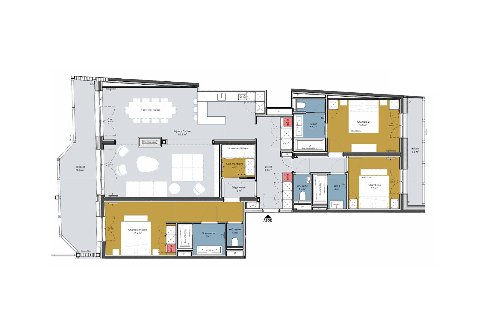 On the 3rd floor of a new, intimate residence, discover this large 128.50sqm flat comprising a beautiful 50sqm living room opening onto a large south-facing terrace. A master bedroom, two beautiful suites and a children's area with bunk beds complete this property. A rare property combining generous volumes and high-quality amenities, in a residence located in the heart of the resort. This property is sold with a ski locker, a storage cellar and two underground parking spaces. VAT credit possible in the context of a rental with para-hotel activity. Delivery December 2027. Condominiums of 11 units (No proceedings in progress).