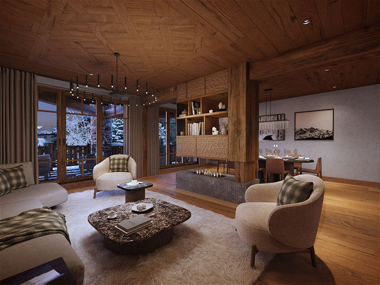 Come and discover this 128.5 sqm apartment and enjoy the comfort of a high-end residence located where everything is within walking distance: shops, skiing, the best restaurants! From its spacious and cosy living room with decorative fireplace, you can enjoy a magnificent view of the mountains. The sleeping area comprises a beautiful master bedroom, a lovely double bedroom with en-suite bathroom, a double bedroom, a cabin with bunk beds for younger children and a bathroom with WC. An exceptional property in a highly sought-after area that will allow you to enjoy resort life to the full. This property is sold with two parking spaces in the basement of the residence, a storage cellar and a ski locker. Delivery: December 2027. Condominiums of 11 units.