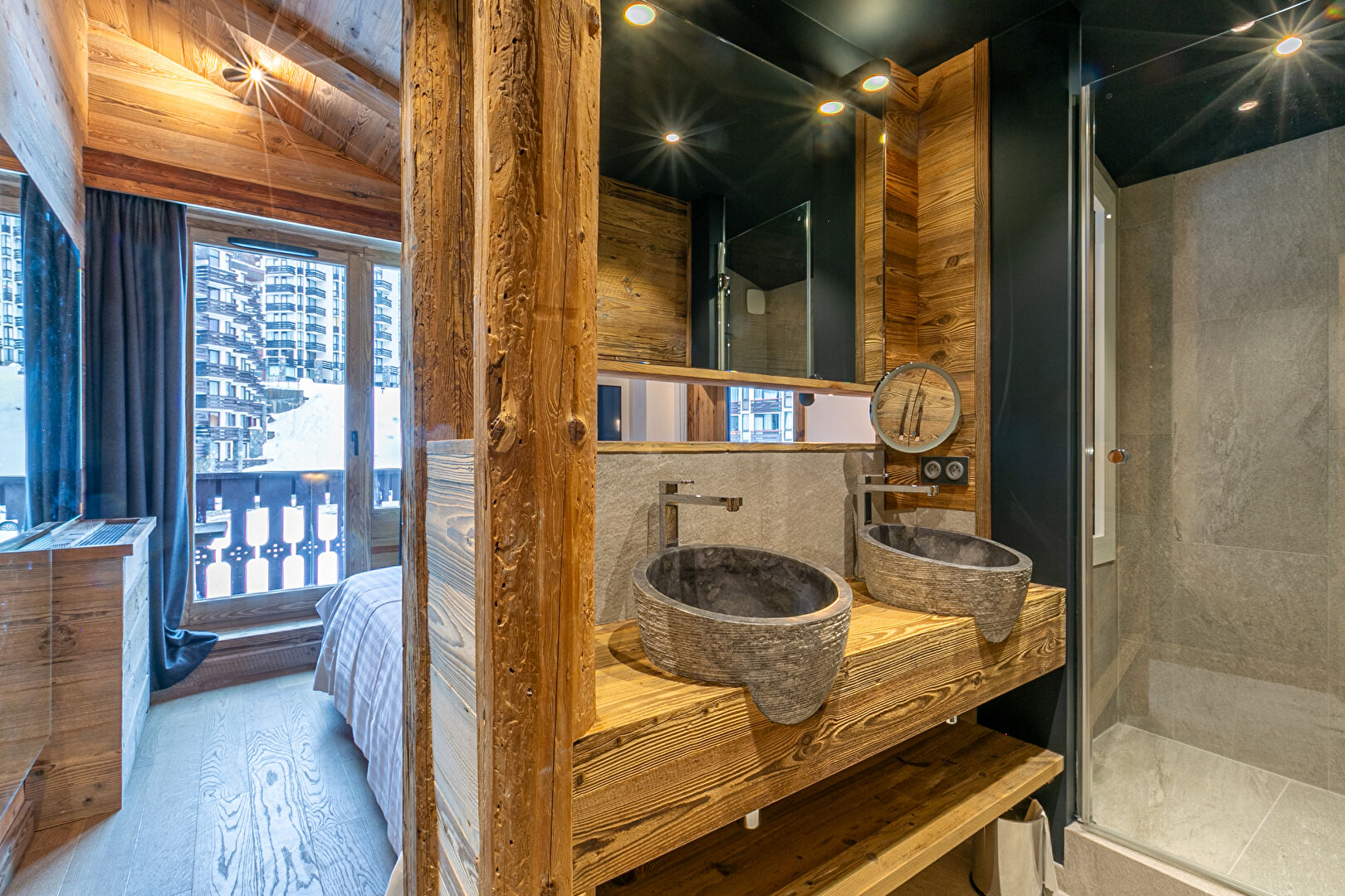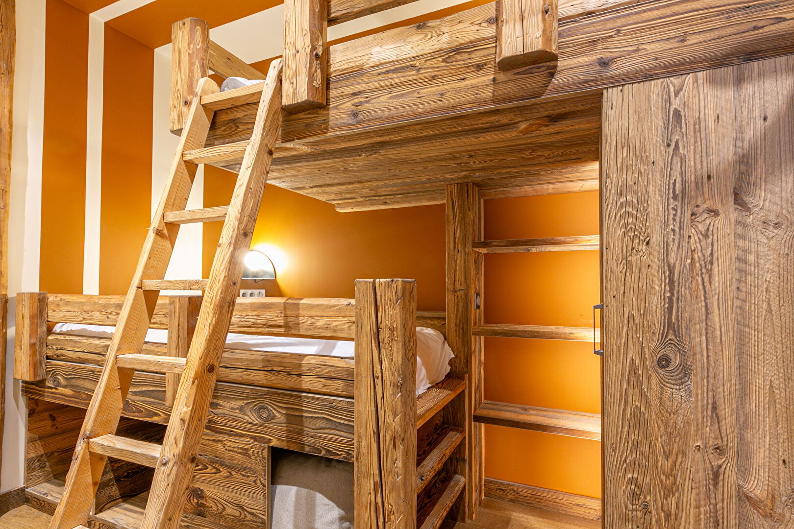 Located on the 4th floor of a centrally located residence, this apartment with a floor area of 121 sqm combines elegance, comfort and mountain spirit. Designed to accommodate up to 8 people, it comprises 2 double bedrooms with en-suite bathrooms, a double bedroom and a cabin with bunk beds and adjoining shower rooms, a study with an extra bed and an additional shower room. It has a very cosy living room with office area, a fireplace and a balcony with mountain views. It charms with its meticulous attention to detail, its warm and refined décor, and its prime location. It comes with 2 parking spaces, 2 cellars and 3 ski storage rooms. A property to be discovered without delay ! Condominiums of 68 units. Annual expenses : 6050 euros.