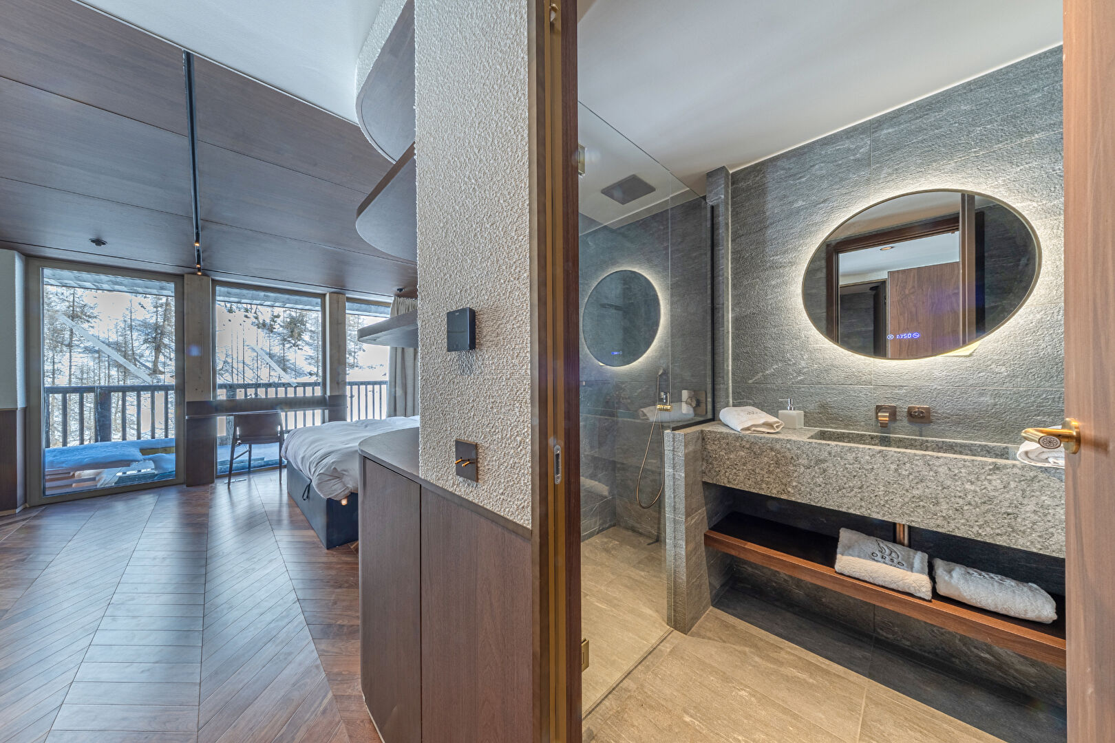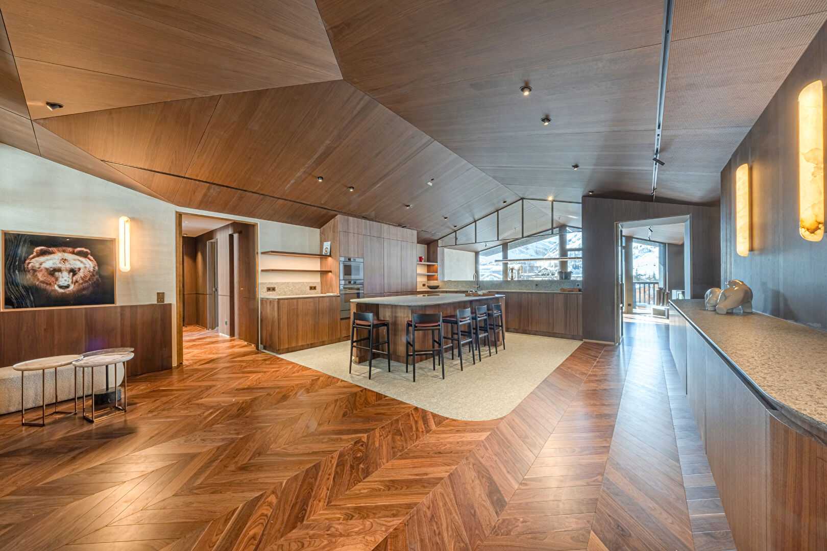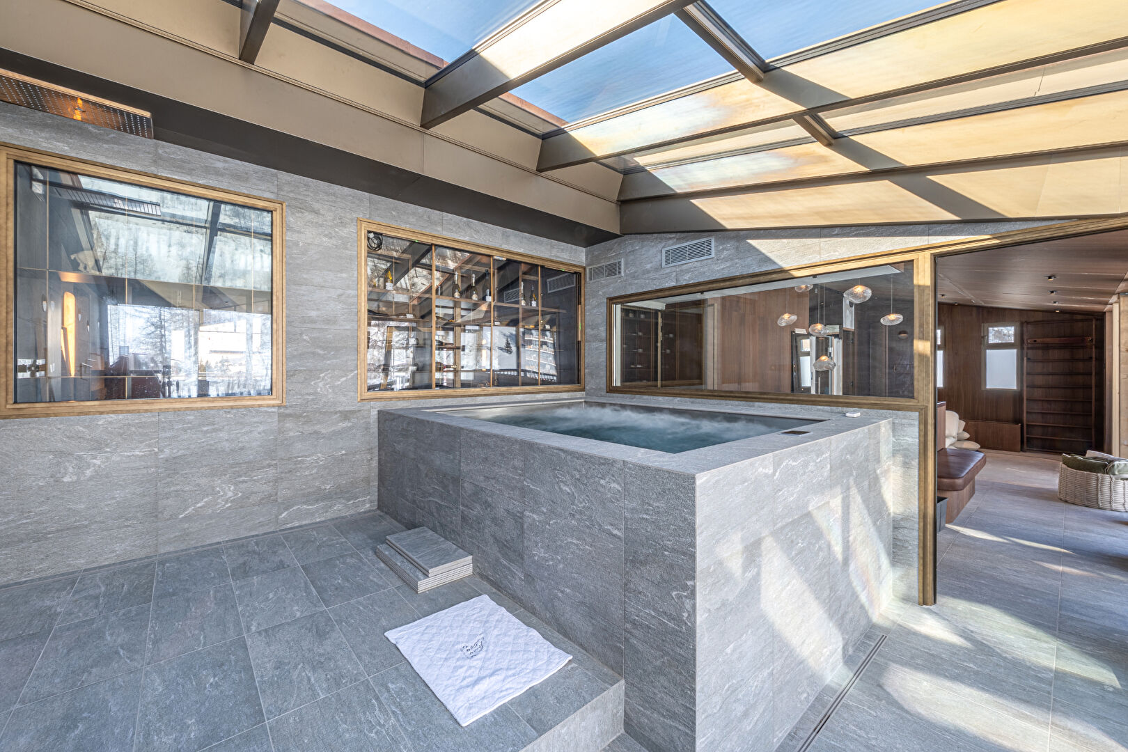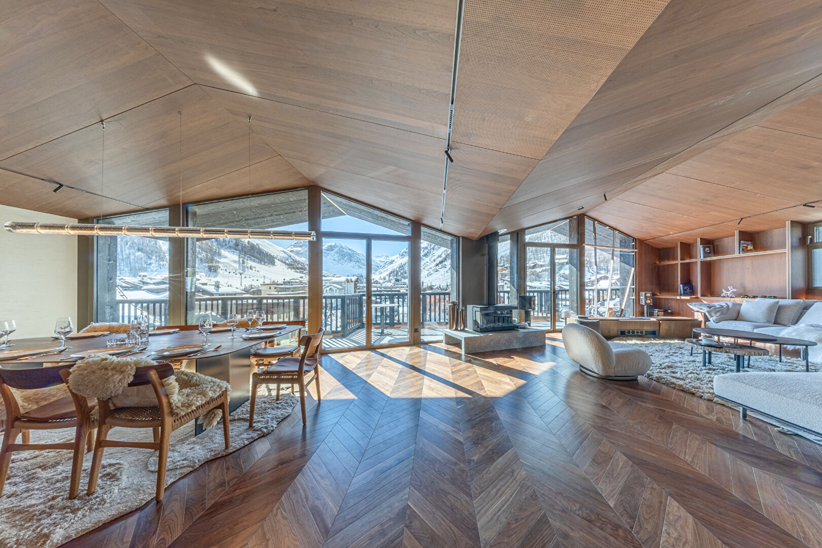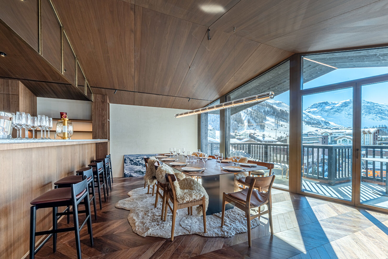 Located in the heart of Val d'Isère, come and discover the penthouse known as 'LE CHALET DE CRISTAL'. With private and secure lift access, this exceptional property offers 316 m² of living space. It takes its name from its numerous north and south-facing windows, which literally invite the mountains into the interior. It comprises four en-suite bedrooms, a gym, a sauna and a jacuzzi with a retractable glass roof, offering a unique alpine immersion experience! To the south, its generously proportioned living room with numerous windows offers a bird's eye view of the village and a wide, breathtaking panorama including the Solaise and Bellevarde mountains. A place as convivial as it is breathtaking, with a refined interior and sunshine that is rare in Val d'Isère, are the major assets of this property with its unique DNA. Condominiums of 52 units.