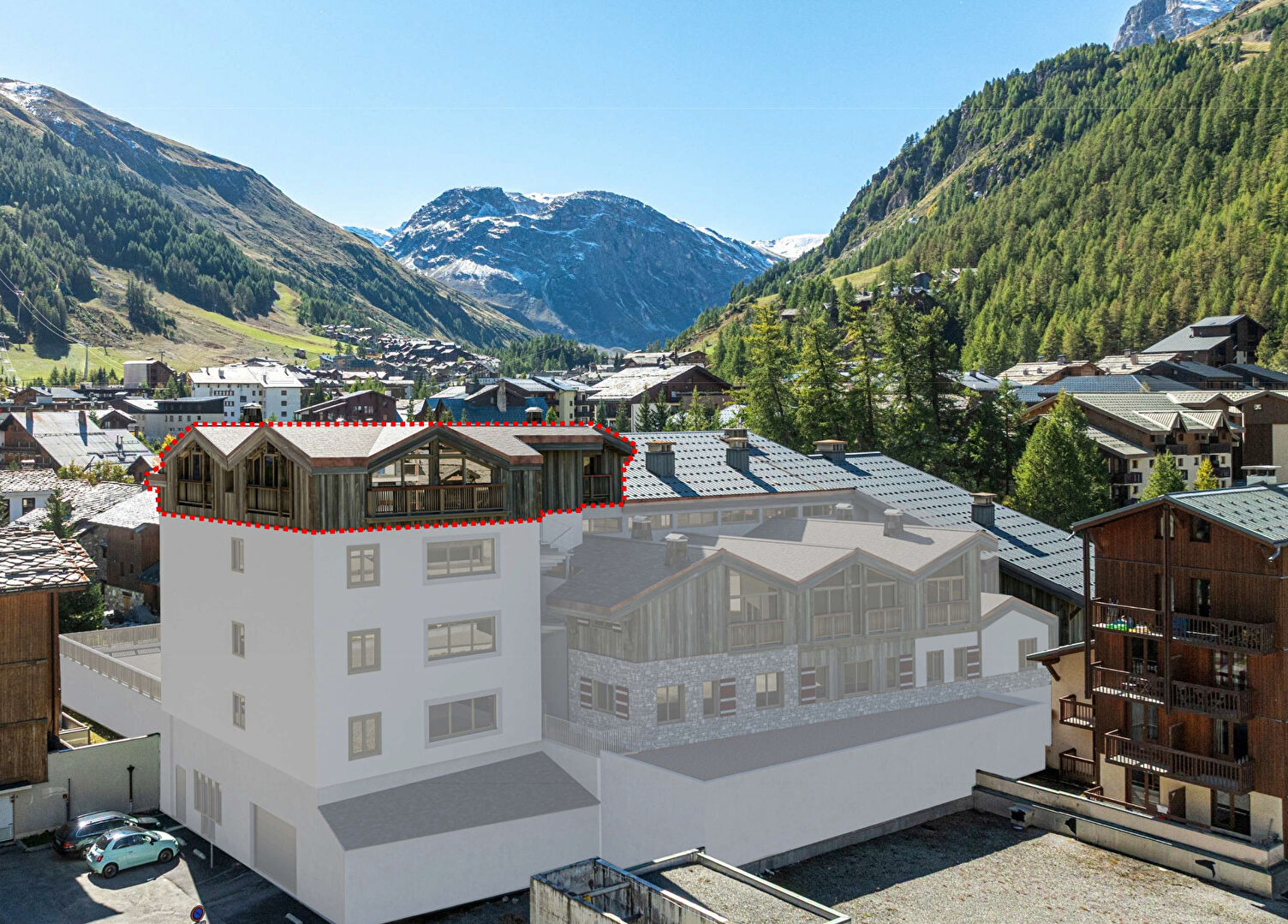 Come and discover an exceptional property on the top floor of the Illaz residence. This is a very high-end apartment of nearly 183 sqm where interior elegance meets the majesty of the Alpine panoramas. Designed to accommodate large families or friends, this property offers 6 bedrooms (including a master bedroom), all designed as true mountain suites, combining comfort, privacy and a warm atmosphere. The generously sized living room, measuring over 55 sqm, is the vibrant heart of the apartment. Thanks to its large windows, the room opens fully onto the surrounding mountains, letting in natural light and revealing a magnificent view. The carefully orchestrated volumes invite conviviality and relaxation, while the refined finishes emphasise the exclusive character of this space. This rare property, located in a central area and featuring masterful interior architecture, represents a unique investment opportunity for family holidays or rental activity. An exceptional property, designed for those seeking absolute comfort and an incomparable alpine experience in the heart of Val d'Isère. Condominiums of 54 units.