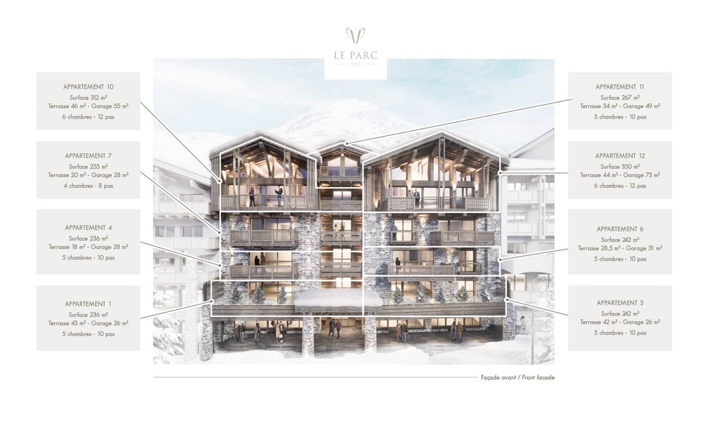 Elegance, authenticity and refinement will be the key words of the LE PARC 1963 residence, the fruit of the synergistic work of 3 renowned developers aiming for excellence. A residence with a precise design and thought out down to the smallest detail, it will clearly fit into its natural high mountain environment. The address is intended to be intimate since it includes only 12 prestigious apartments facing an exceptional Alpine panorama and will allow you to fully enjoy the heart of the famous resort of Val d'Isère: proximity to the slopes, shops, restaurants, etc. ., in a luxury building with a concierge service provided by the K2 Chogori palace! A place with a distinctive identity that promises you memorable stays! Delivery: winter 2025. Condominiums of 12 units (No proceedings in progress).